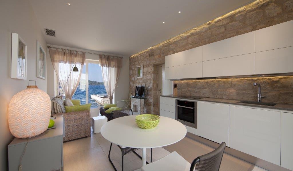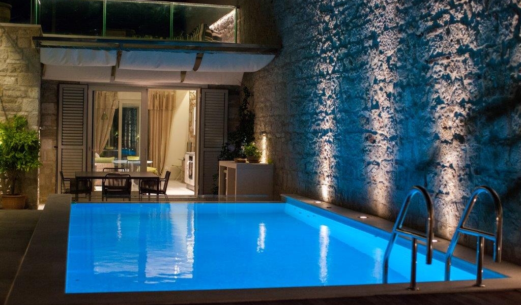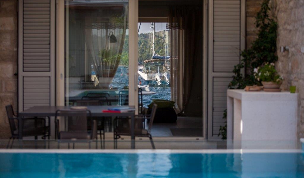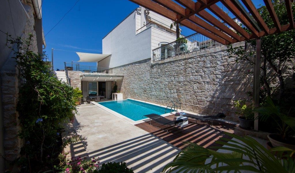 This modern one bedroom house is located in Vis town, the old town – Kut. Its main attractions are a lovely garden terrace with the private swimming pool and the roof top terrace offering stunning panoramic views of the picturesque bay and the surrounding area. It gives you a luxury of tasteful furnishings and great outdoor space. The sea is literaly on your door step.