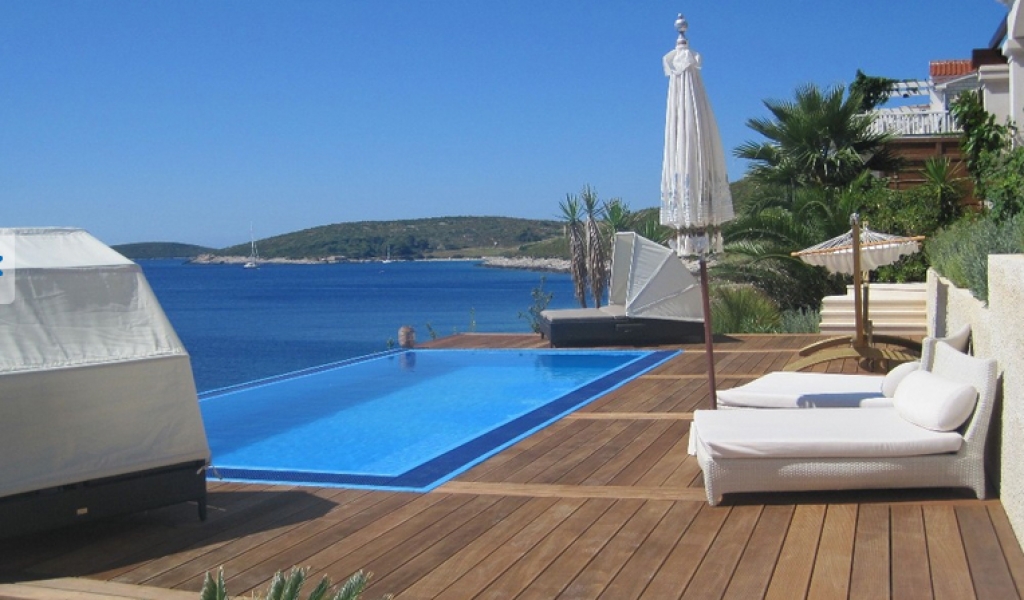 The Villa benefits from its private pool and barbecue / lounge area, which creates an open air living room and atrium. Having wall fenced Mediterranean garden it is ideal for families with children and people who seek quietness and intimacy. With 4 double and 1 twin bedroom with en suite bathrooms it is a perfect base to explore the wonders of the coast and the small islands close by.