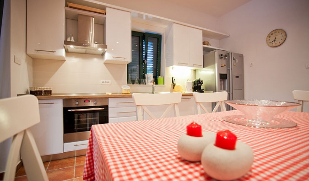 The villa consists of a comfortable living / dining area with a stunning kitchen opening out to a spacious garden terrace and swimming pool area on the ground floor. There is also a bathroom and a single room on the same floor. A staircase leads to the first floor where there are two double bedrooms and a bathroom. Both bedrooms have an access to a terrace overlooking the whole bay of Vis.