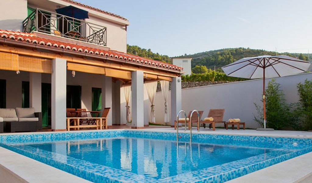 This modern three bedroom villa is located in Vis town, more precisely in the old town – Kut. Its main attractions are a lovely garden terrace with the swimming pool and the top terrace offering guests stunning panoramic views of the picturesque bay and the surrounding area.